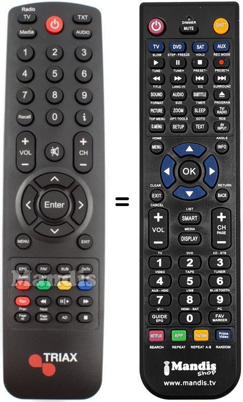 Remote control to replace the original and all its functions.