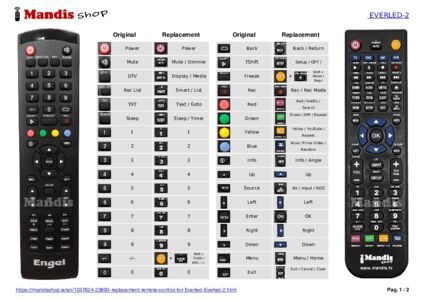 Below, we will show you the correspondence between each button on the original remote control and the button that performs the same function on the replacement remote control. In some cases, you may need to press the SHIFT key before pressing another button to perform certain actions. These additional functions are often not widely used and are included to facilitate understanding of the replacement remote control, or because the original remote control has more buttons than its equivalent.