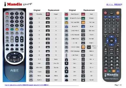 A document is included to help you use the new remote control easily, showing the button correspondence.