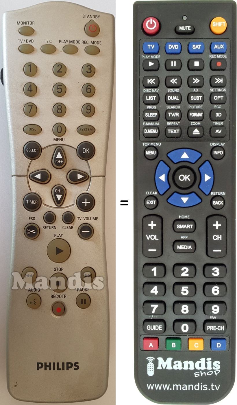 Below, we will show you the correspondence between each button on the original remote control and the button that performs the same function on the replacement remote control. In some cases, you may need to press the SHIFT key before pressing another button to perform certain actions. These additional functions are often not widely used and are included to facilitate understanding of the replacement remote control, or because the original remote control has more buttons than its equivalent.