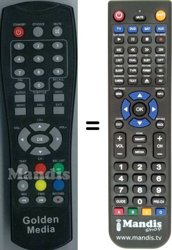 This remote control fully replaces your Goldenmedia and offers all the functions of the original.