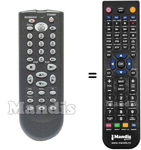 Below, we will show you the correspondence between each button on the original remote control and the button that performs the same function on the replacement remote control. In some cases, you may need to press the SHIFT key before pressing another button to perform certain actions. These additional functions are often not widely used and are included to facilitate understanding of the replacement remote control, or because the original remote control has more buttons than its equivalent.