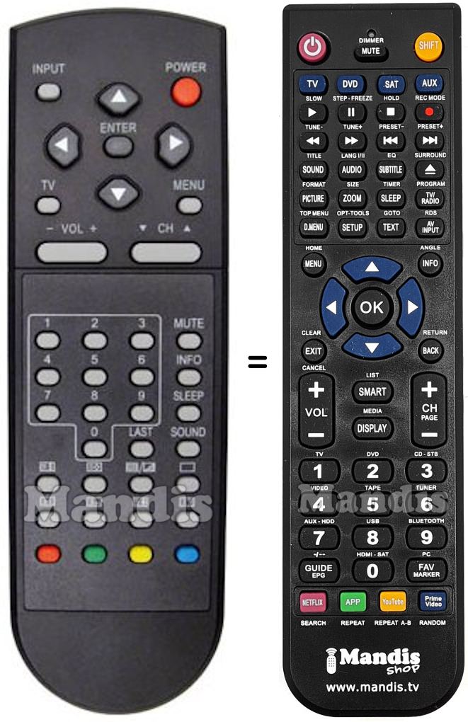 We offer a replacement remote control that completely replaces your original in all its functions. This isn't a universal remote, but an exact copy with all the same buttons and functionalities.