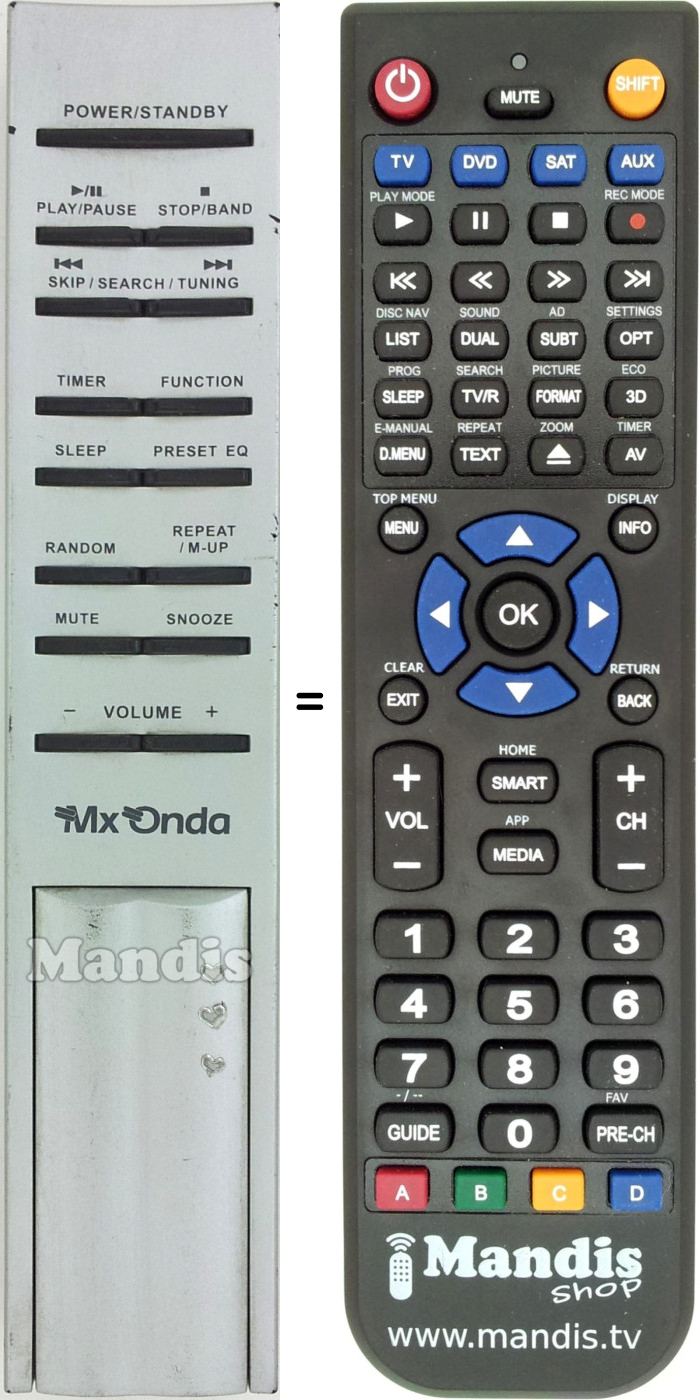 This remote control fully replaces your MX008 and offers all the functions of the original.