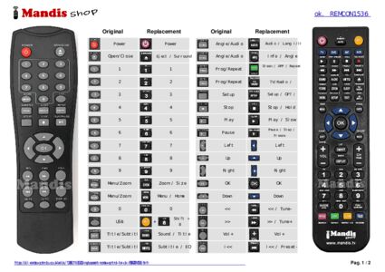 A document is included to help you use the new remote control easily, showing the button correspondence.