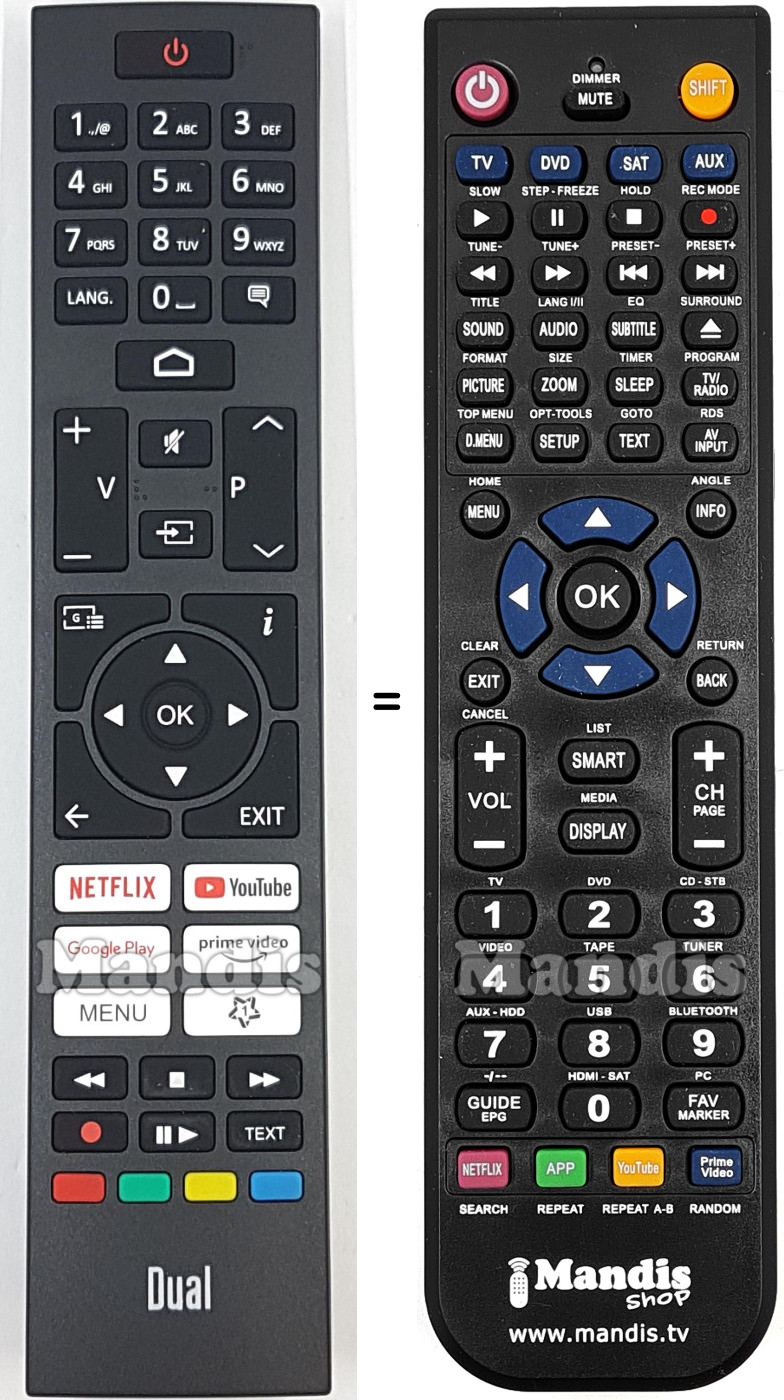 Below, we will show you the correspondence between each button on the original remote control and the button that performs the same function on the replacement remote control. In some cases, you may need to press the SHIFT key before pressing another button to perform certain actions. These additional functions are often not widely used and are included to facilitate understanding of the replacement remote control, or because the original remote control has more buttons than its equivalent.