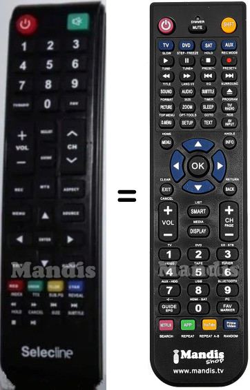 Below, we will show you the correspondence between each button on the original remote control and the button that performs the same function on the replacement remote control. In some cases, you may need to press the SHIFT key before pressing another button to perform certain actions. These additional functions are often not widely used and are included to facilitate understanding of the replacement remote control, or because the original remote control has more buttons than its equivalent.