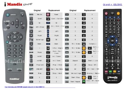 1. Look at the images of the two remote controls: the original (left) and the replacement (right).