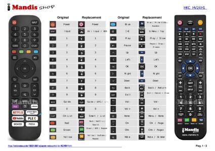 A document is included to help you use the new remote control easily, showing the button correspondence.