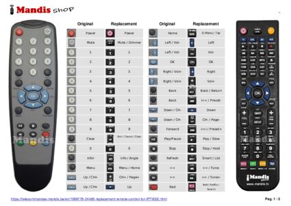 1. Look at the images of the two remote controls: the original (left) and the replacement (right).