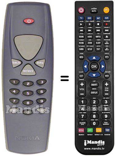 Below, we will show you the correspondence between each button on the original remote control and the button that performs the same function on the replacement remote control. In some cases, you may need to press the SHIFT key before pressing another button to perform certain actions. These additional functions are often not widely used and are included to facilitate understanding of the replacement remote control, or because the original remote control has more buttons than its equivalent.