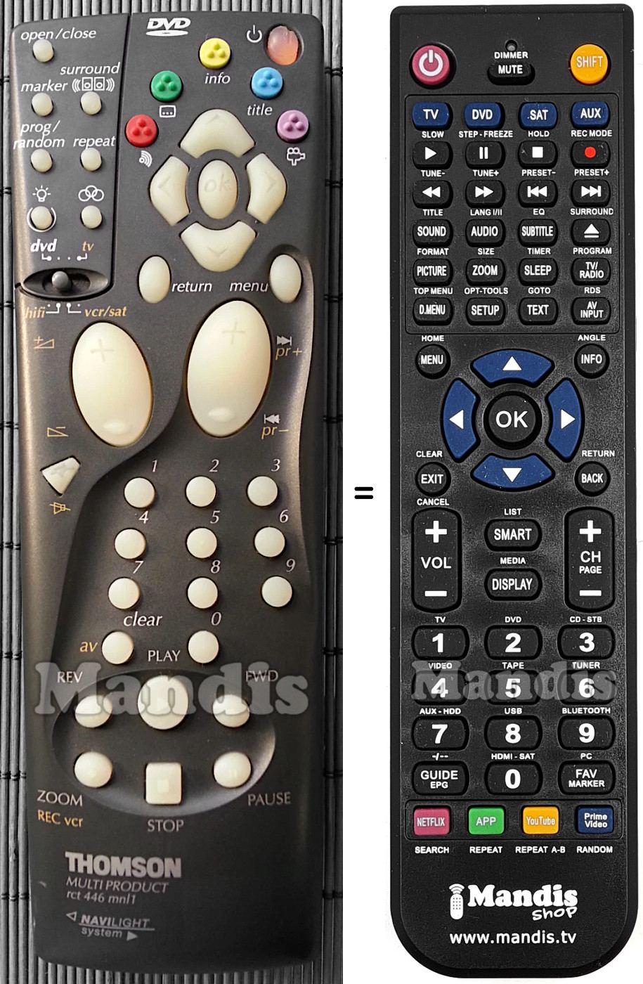 This remote control fully replaces your RCT 446 and offers all the functions of the original.