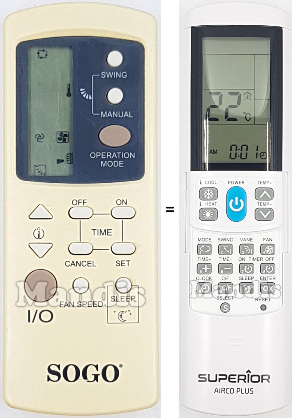 My LG air-conditioner's remote died and need replacement. AircoPlus did the job. I should point out that the code match did not correspond according to manufacturer's table. Let the auto-search code set up do the work. Also, excellent service by Mandis Remotes with a well-protected package.