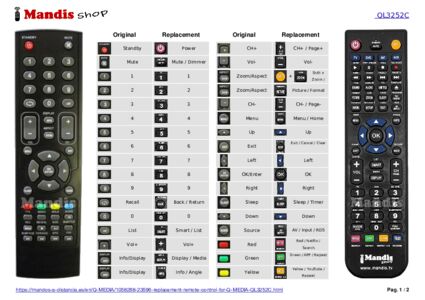 1. Look at the images of the two remote controls: the original (left) and the replacement (right).