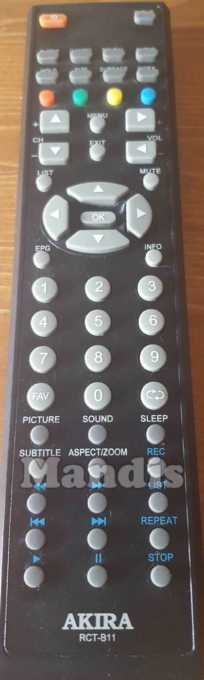 original remote control RCT-B11 used for televisions for the brand AKIRA. This is an original remote control.