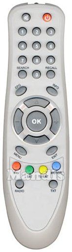 Power, Mute, 1, 2, 3, 4, 5, 6, 7, 8, 9, 0, Search, Recall, EPG, Info, Up, Down, Right, Left, OK, Menu, Exit, Red / FAV, Green / SAT, Yellow / TV/SAT, Blue / MOTOR, Radio, TXT