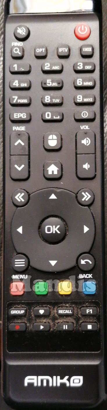 original remote control AMI001 used for televisions for the brand AMIKO. This is an original remote control.