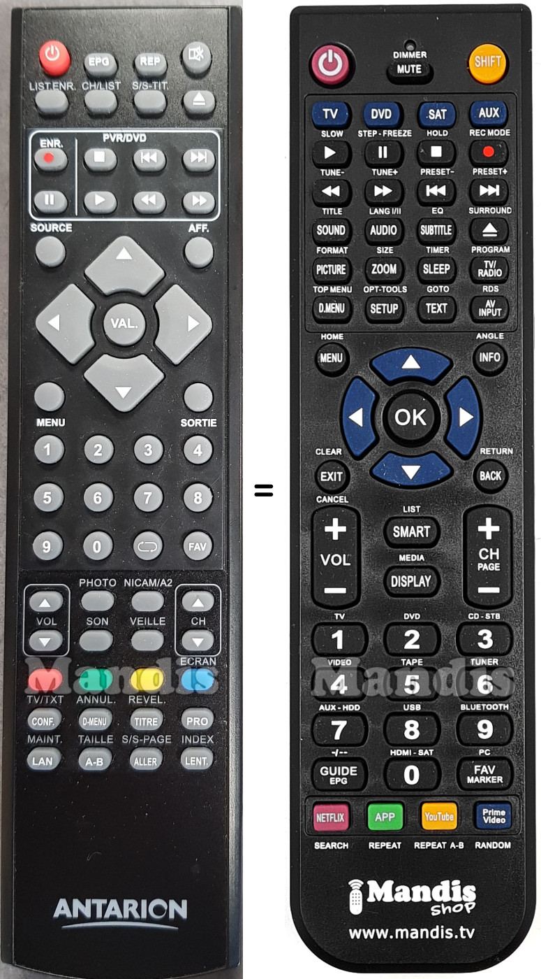 Below, we will show you the correspondence between each button on the original remote control and the button that performs the same function on the replacement remote control. In some cases, you may need to press the SHIFT key before pressing another button to perform certain actions. These additional functions are often not widely used and are included to facilitate understanding of the replacement remote control, or because the original remote control has more buttons than its equivalent.
