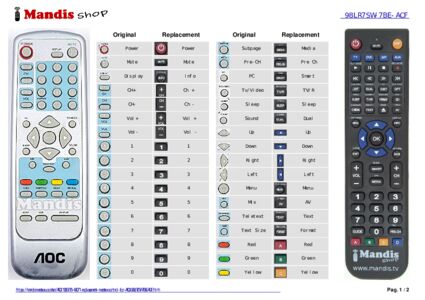 Home > Brands > Remote controls AOC > Remote control for AOC 98LR7SW