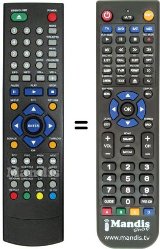 Below, we will show you the correspondence between each button on the original remote control and the button that performs the same function on the replacement remote control. In some cases, you may need to press the SHIFT key before pressing another button to perform certain actions. These additional functions are often not widely used and are included to facilitate understanding of the replacement remote control, or because the original remote control has more buttons than its equivalent.