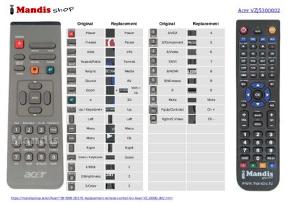 Below, we will show you the correspondence between each button on the original remote control and the button that performs the same function on the replacement remote control. In some cases, you may need to press the SHIFT key before pressing another button to perform certain actions. These additional functions are often not widely used and are included to facilitate understanding of the replacement remote control, or because the original remote control has more buttons than its equivalent.