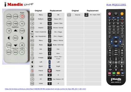 A document is included to help you use the new remote control easily, showing the button correspondence.