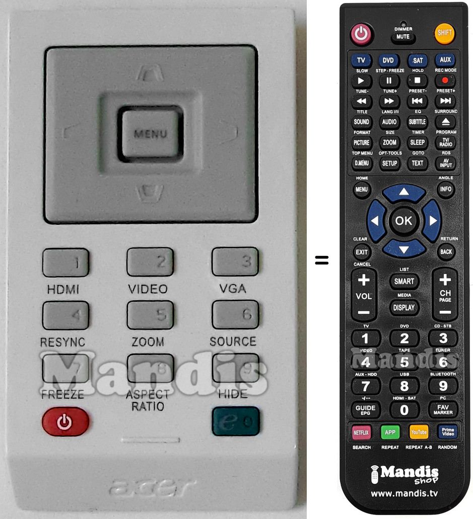 This remote control performs all the functions of the original remote control: