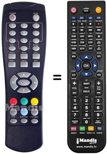 Remote control to replace the original and all its functions.