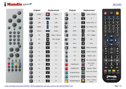 Below, we will show you the correspondence between each button on the original remote control and the button that performs the same function on the replacement remote control. In some cases, you may need to press the SHIFT key before pressing another button to perform certain actions. These additional functions are often not widely used and are included to facilitate understanding of the replacement remote control, or because the original remote control has more buttons than its equivalent.