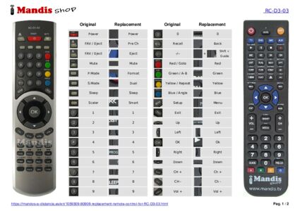 This remote control fully replaces your RC-D3-03 and offers all the functions of the original.