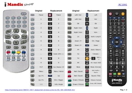 This remote control fully replaces your RC1091 and offers all the functions of the original.