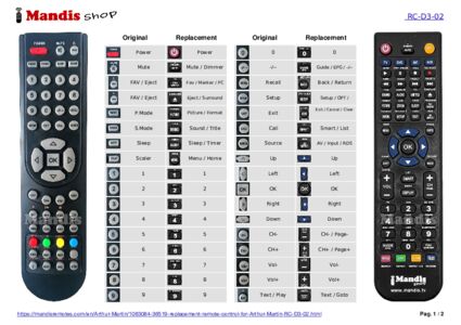 Below, we will show you the correspondence between each button on the original remote control and the button that performs the same function on the replacement remote control. In some cases, you may need to press the SHIFT key before pressing another button to perform certain actions. These additional functions are often not widely used and are included to facilitate understanding of the replacement remote control, or because the original remote control has more buttons than its equivalent.