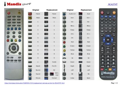 Below, we will show you the correspondence between each button on the original remote control and the button that performs the same function on the replacement remote control. In some cases, you may need to press the SHIFT key before pressing another button to perform certain actions. These additional functions are often not widely used and are included to facilitate understanding of the replacement remote control, or because the original remote control has more buttons than its equivalent.