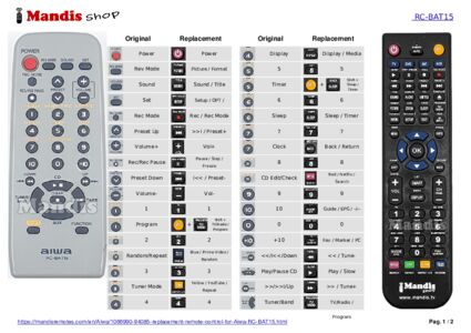 This remote control fully replaces your RC-BAT15 and offers all the functions of the original.