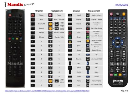 Below, we will show you the correspondence between each button on the original remote control and the button that performs the same function on the replacement remote control. In some cases, you may need to press the SHIFT key before pressing another button to perform certain actions. These additional functions are often not widely used and are included to facilitate understanding of the replacement remote control, or because the original remote control has more buttons than its equivalent.