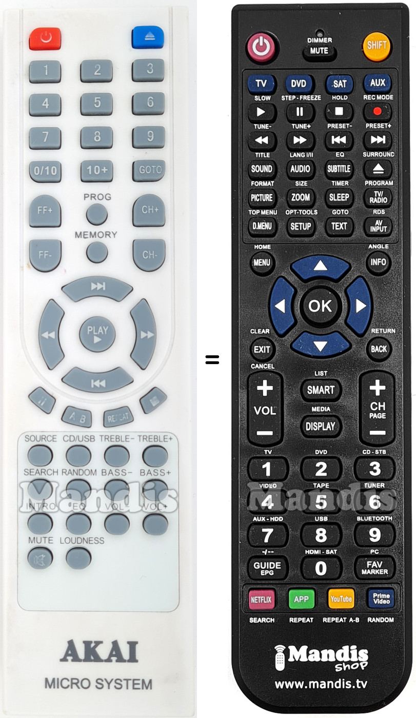 Below, we will show you the correspondence between each button on the original remote control and the button that performs the same function on the replacement remote control. In some cases, you may need to press the SHIFT key before pressing another button to perform certain actions. These additional functions are often not widely used and are included to facilitate understanding of the replacement remote control, or because the original remote control has more buttons than its equivalent.