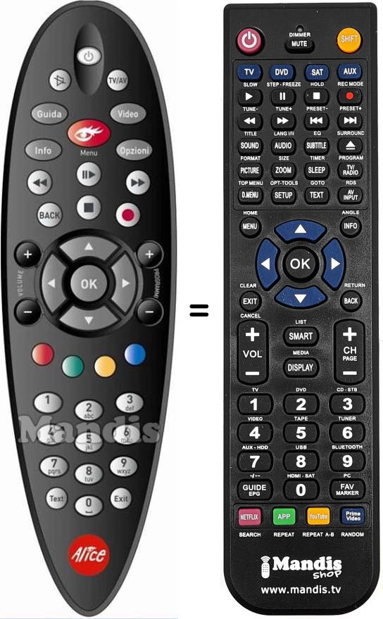 Remote control to replace the original and all its functions.