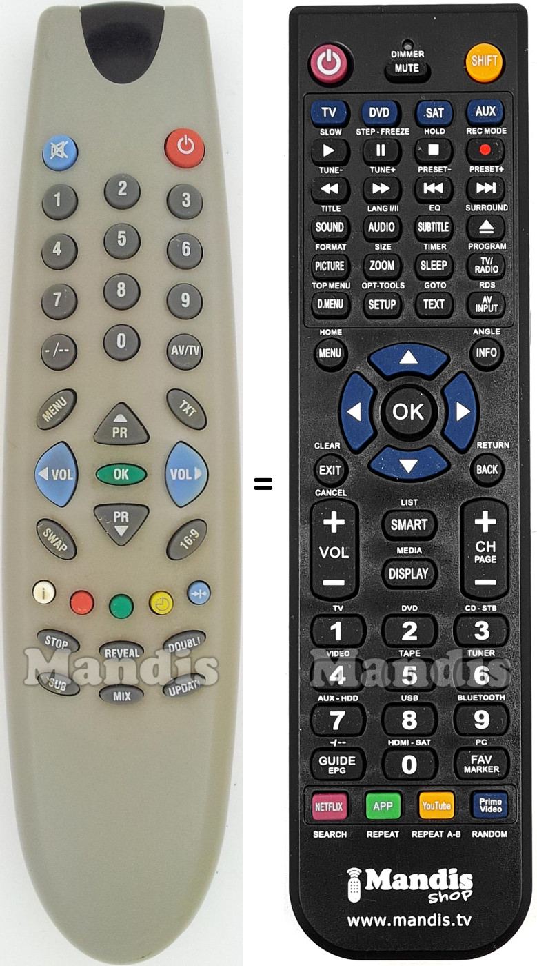 Below, we will show you the correspondence between each button on the original remote control and the button that performs the same function on the replacement remote control. In some cases, you may need to press the SHIFT key before pressing another button to perform certain actions. These additional functions are often not widely used and are included to facilitate understanding of the replacement remote control, or because the original remote control has more buttons than its equivalent.