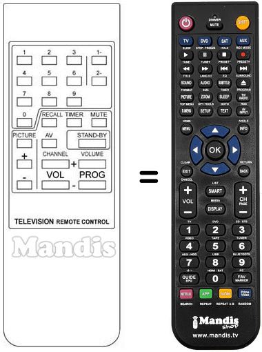 Remote control to replace the original and all its functions.