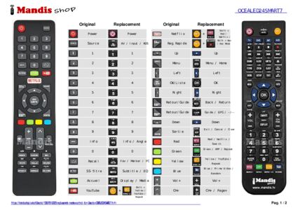 Below, we will show you the correspondence between each button on the original remote control and the button that performs the same function on the replacement remote control. In some cases, you may need to press the SHIFT key before pressing another button to perform certain actions. These additional functions are often not widely used and are included to facilitate understanding of the replacement remote control, or because the original remote control has more buttons than its equivalent.