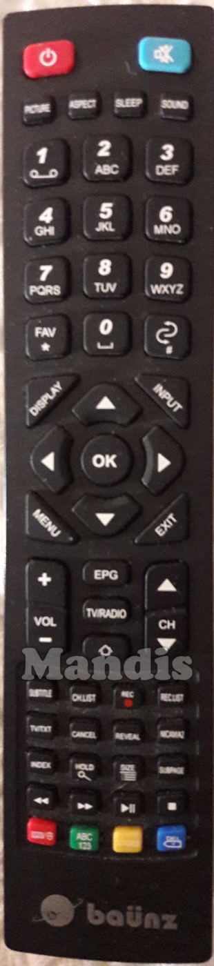original remote control BAU002 used for televisions for the brand BAUNZ. This is an original remote control.