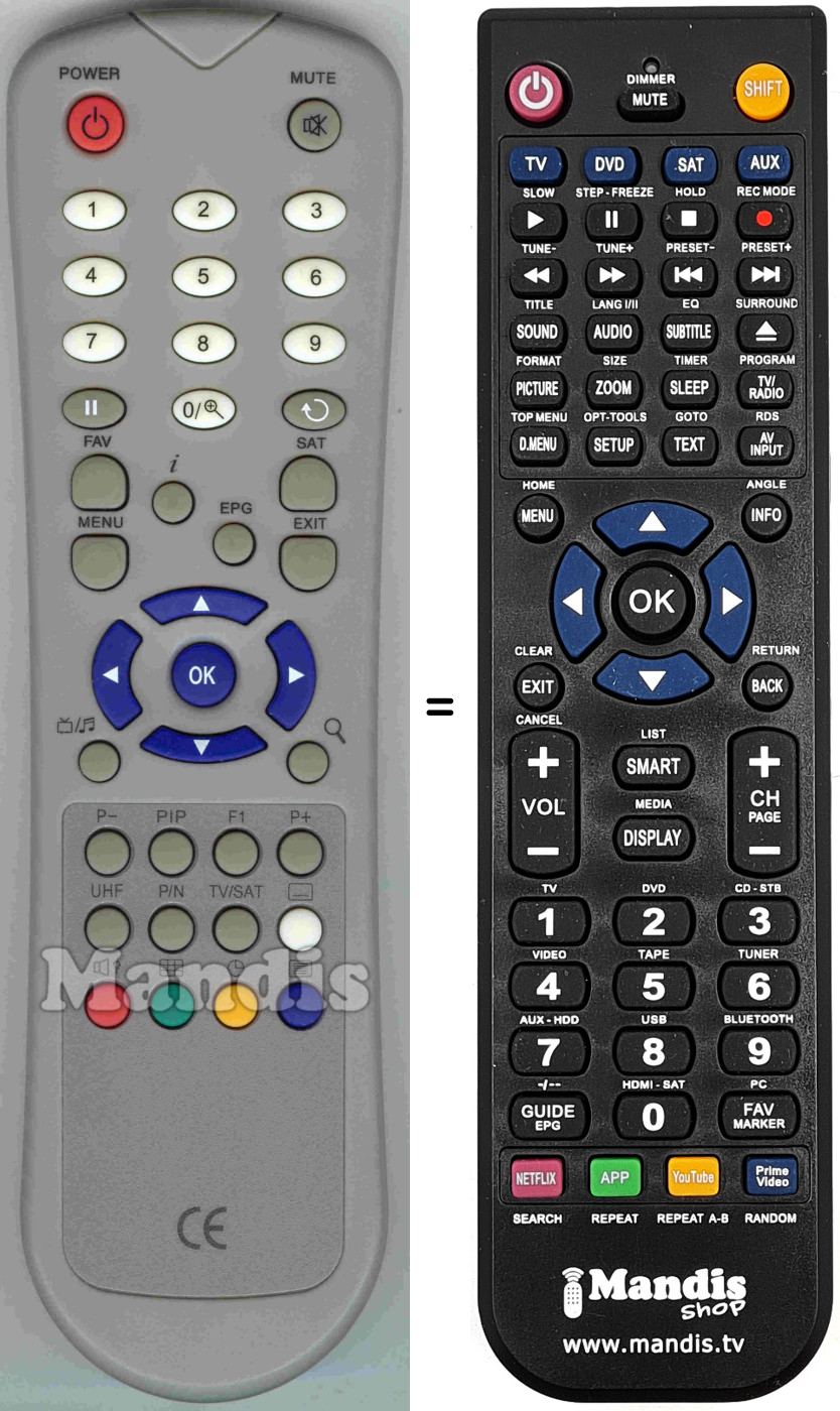 Remote control to replace the original and all its functions.