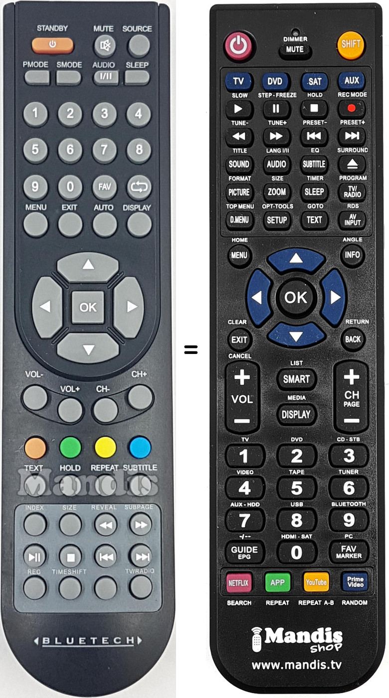 A document is included to help you use the new remote control easily, showing the button correspondence.