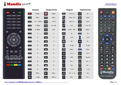 Attention: This remote control replaces most of the functions of your ATVS55915, but not all. The main functions are included, but some secondary functions may not be available.