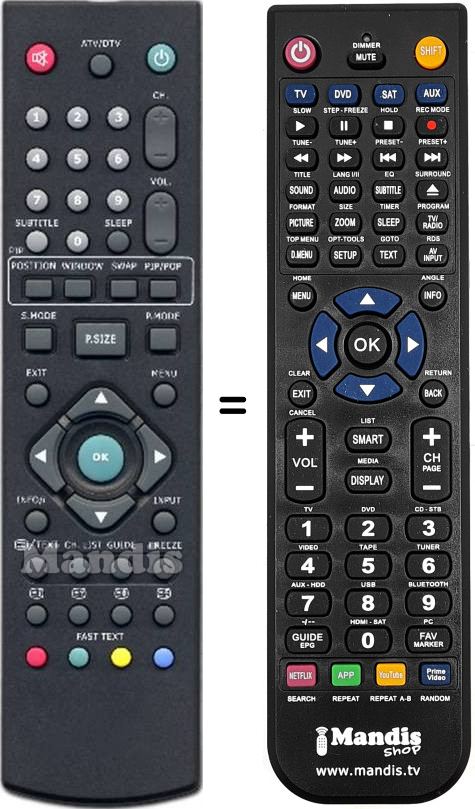 Remote control to replace the original and all its functions.