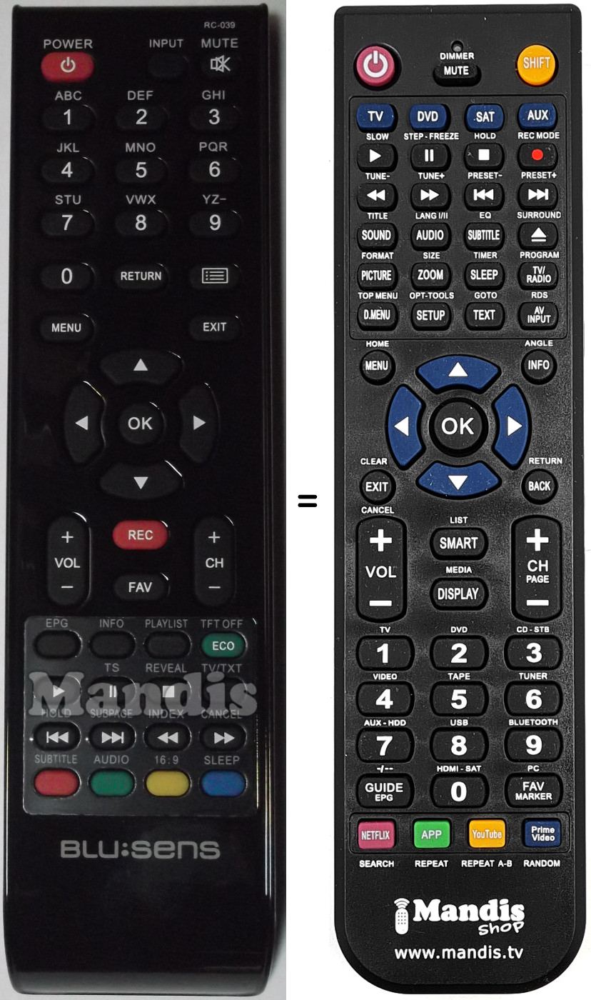 Remote control to replace the original RC039 and all its functions.