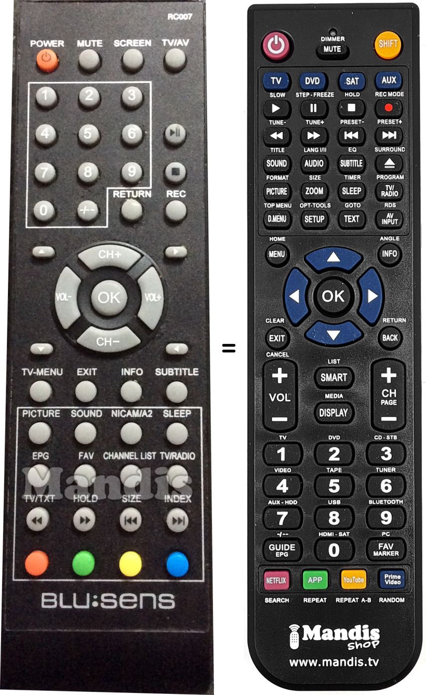 Remote control to replace the original and all its functions.