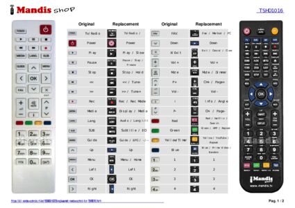 This remote control fully replaces your TSHD1016 and offers all the functions of the original.