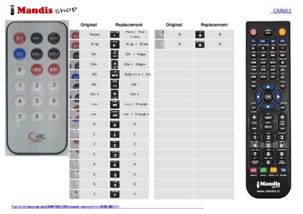 This remote control fully replaces your CAR002 and offers all the functions of the original.