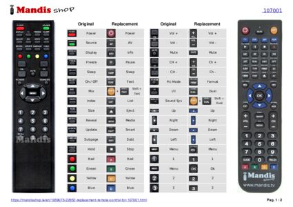 Below, we will show you the correspondence between each button on the original remote control and the button that performs the same function on the replacement remote control. In some cases, you may need to press the SHIFT key before pressing another button to perform certain actions. These additional functions are often not widely used and are included to facilitate understanding of the replacement remote control, or because the original remote control has more buttons than its equivalent.